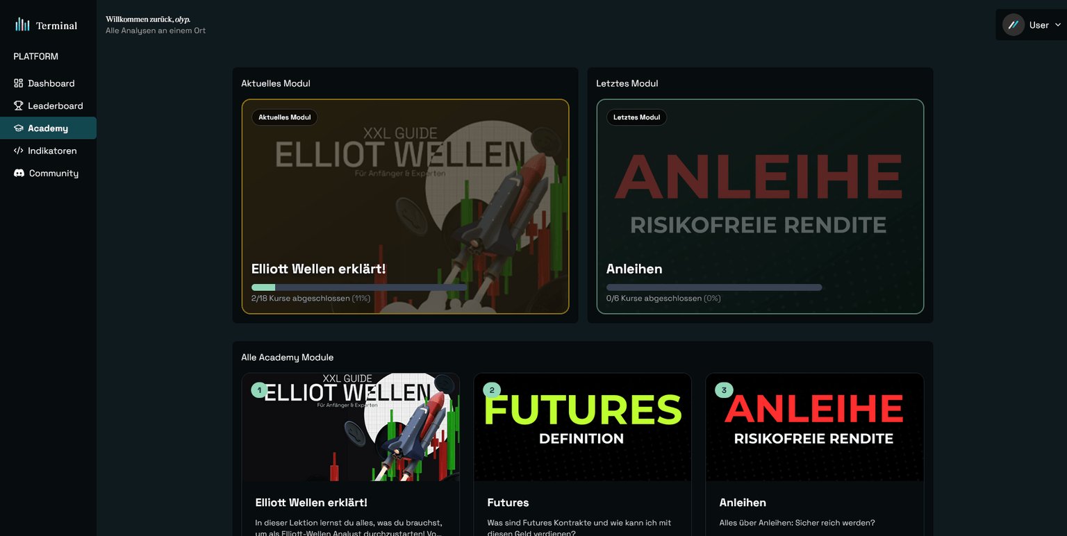 Erhalte Zugriff auf tägliche Analysen, exclusive Gruppenchats, eine Ausbildung zum professionellen Trader und Zugang zu unserem Terminal.