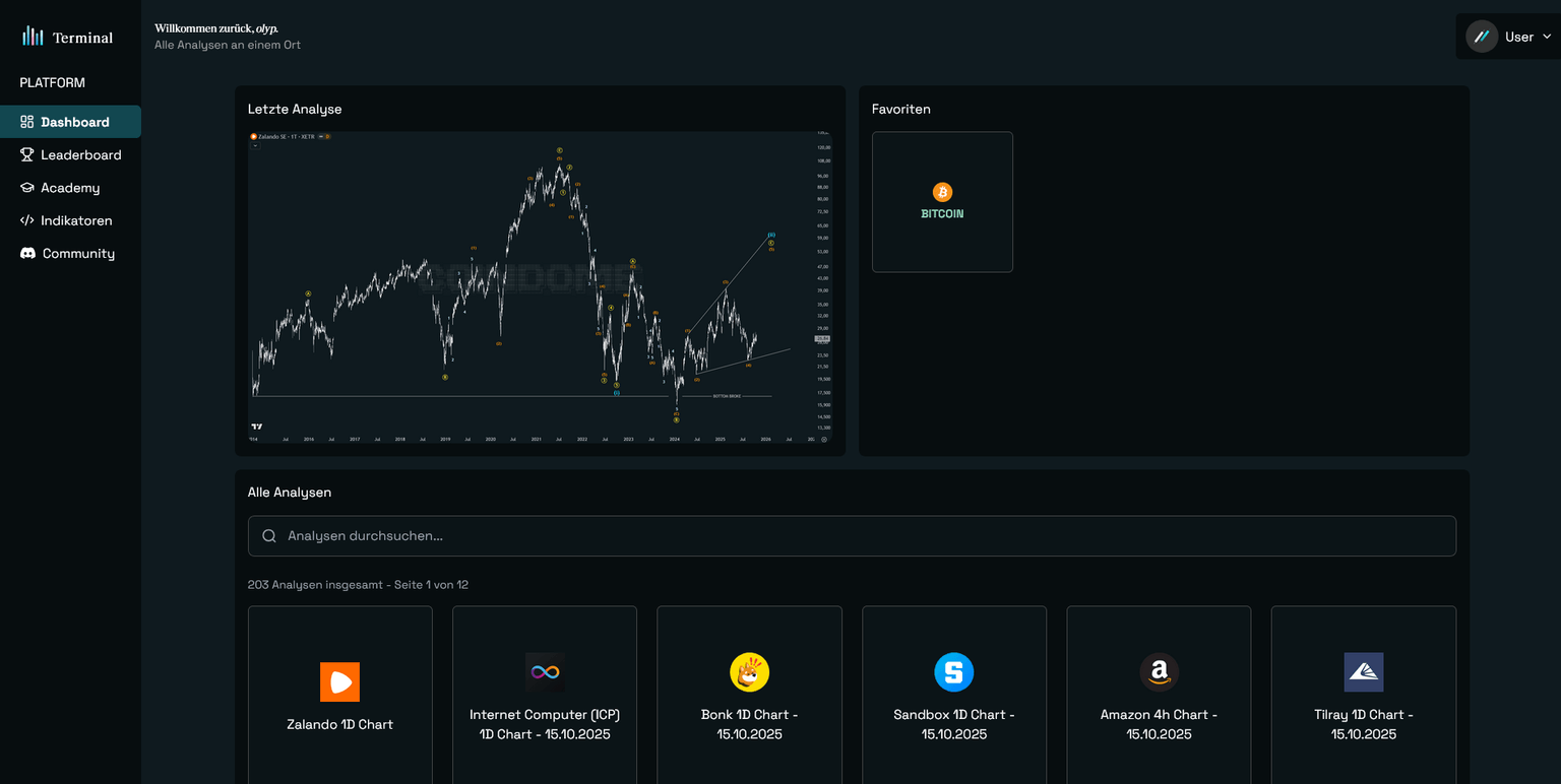 • Du bekommst visuelle Elliott-Wellen-Strukturen, Key-Levels und Prognosen
